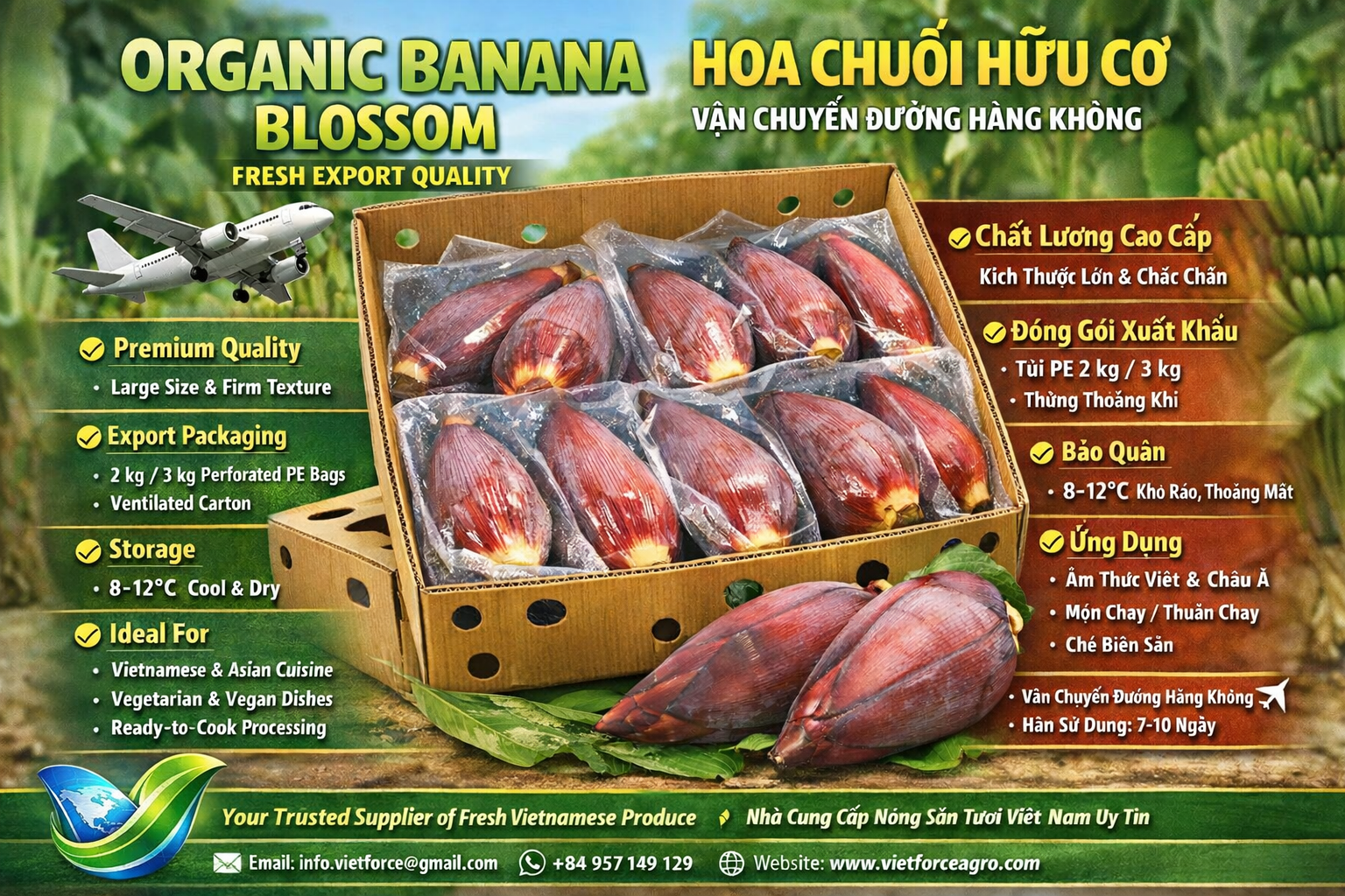ORGANIC BANANA BLOSSOM – FRESH EXPORT QUALITY Product: Organic Banana Blossom Fresh Vietnamese organic banana