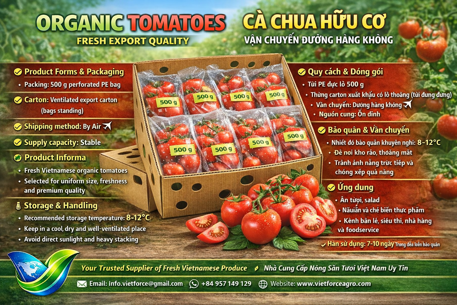 ORGANIC TOMATOES – FRESH EXPORT QUALITY Product: Organic Tomatoes Fresh Vietnamese organic tomatoes, carefully selected