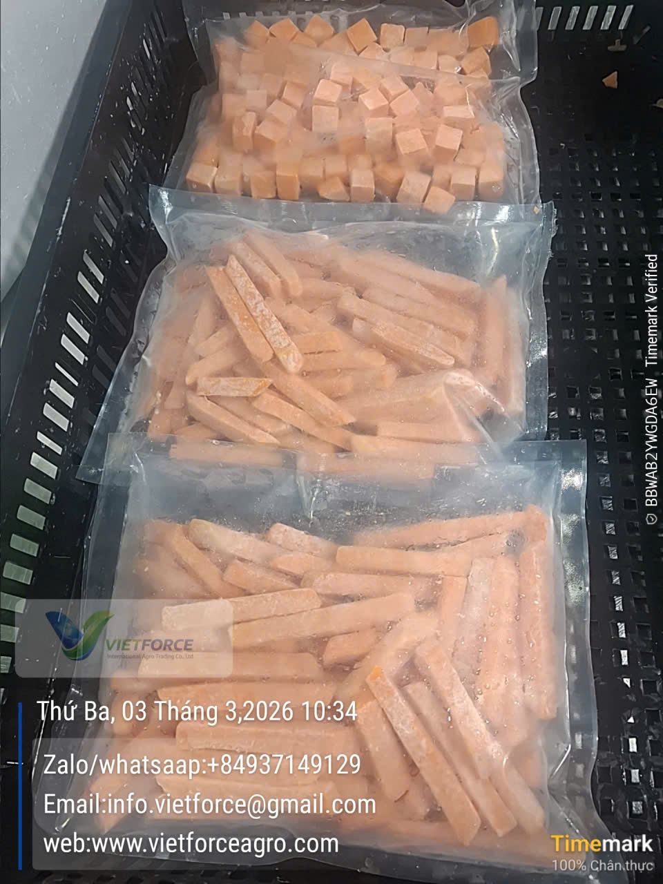 🥔 KHOAI LANG NGHỆ CẮT SỢI 10MM ĐÔNG LẠNH 🥔 FROZEN TURMERIC SWEET POTATO – 10MM JULIENNE