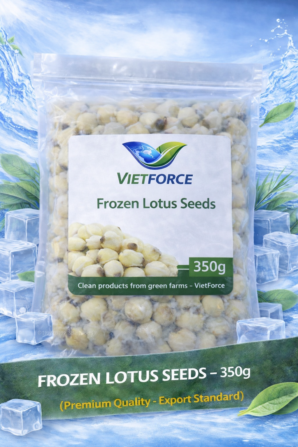 Processed and deep frozen to preserve the natural color, texture, and mild sweetness of fresh lotus seeds.