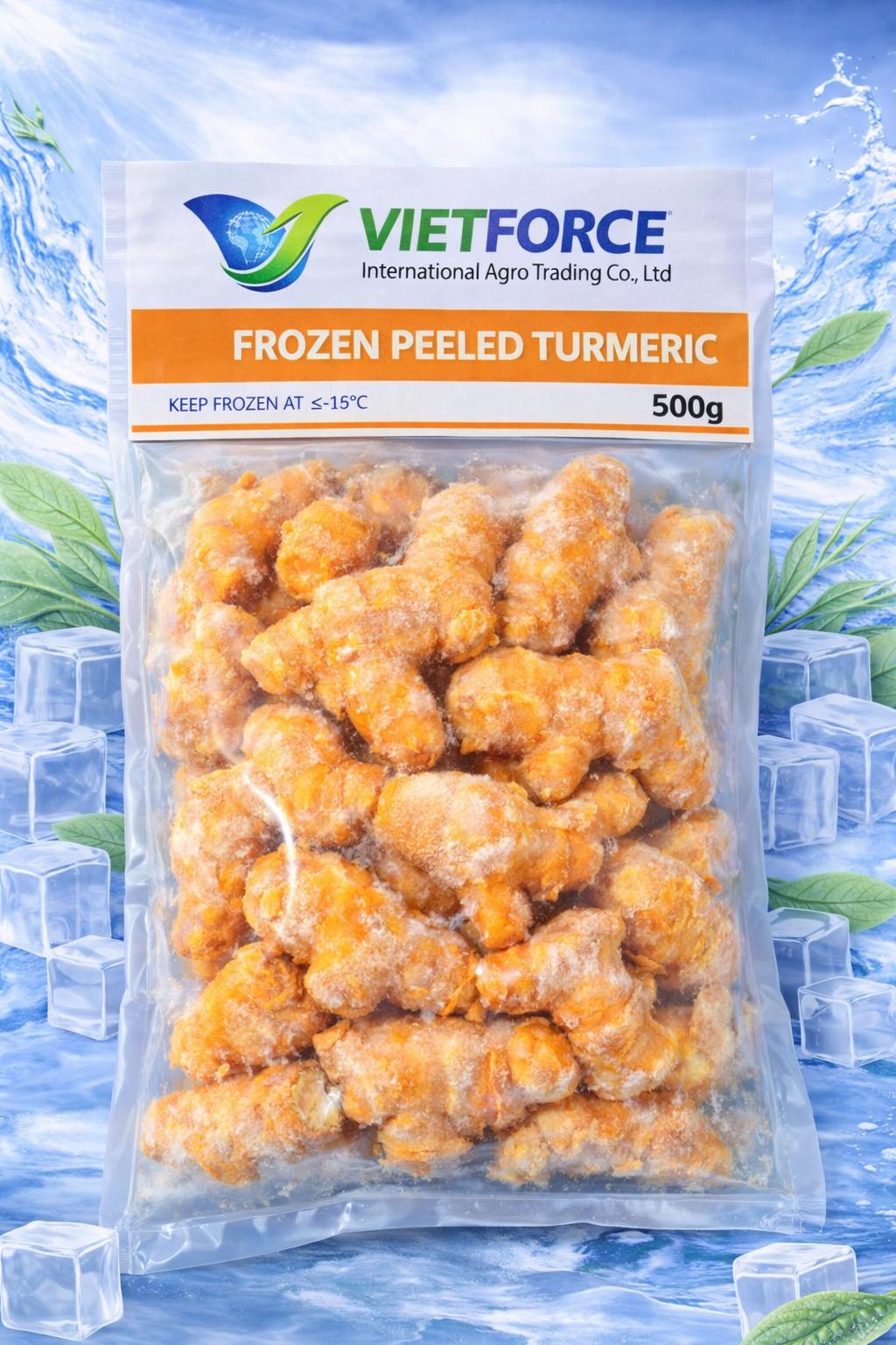 Carefully selected fresh turmeric roots, peeled clean, processed and deep frozen to maintain natural aroma, vibrant color, and nutritional value.