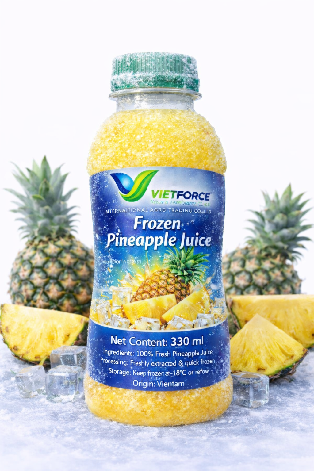 Frozen Pineapple Juice by VIETFORCE International Agro Trading Co., Ltd is produced from carefully selected ripe pineapples, freshly extracted and quick-frozen to preserve the natural flavor, color, and nutritional value. This product is designed to meet the growing demand for convenience, consistency, and food safety in the global beverage market.
