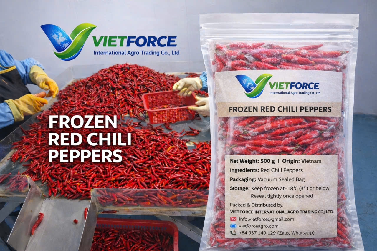 • VIETFORCE INTERNATIONAL AGRO TRADING CO., LTD chuyên cung cấp và xuất khẩu đa dạng các loại nông sản đông lạnh chất lượng cao, đáp ứng tiêu chuẩn quốc tế. Chúng tôi cung cấp đầy đủ các loại nông sản đông lạnh theo mùa từ các nước Úc, Mỹ, Canada, Pháp, Hà Lan, Ba Lan, Chilê, Nam Phi, New Zealand, Tây Ban Nha, Đài Loan, Hàn Quốc, Nhật Bản... Nông sản đặc sản Việt Nam chuẩn VietGAP, Global GAP, Organic, phục vụ xuất khẩu sang nhiều thị trường lớn. Ngoài ra, chúng tôi còn cung cấp bánh kẹo, thực phẩm dinh dưỡng nhập khẩu từ nhiều quốc gia trên thế giới. Sản phẩm của chúng tôi luôn đảm bảo vệ sinh an toàn thực phẩm, đóng gói kỹ lưỡng, phù hợp cho xuất khẩu và tiêu dùng nội địa.