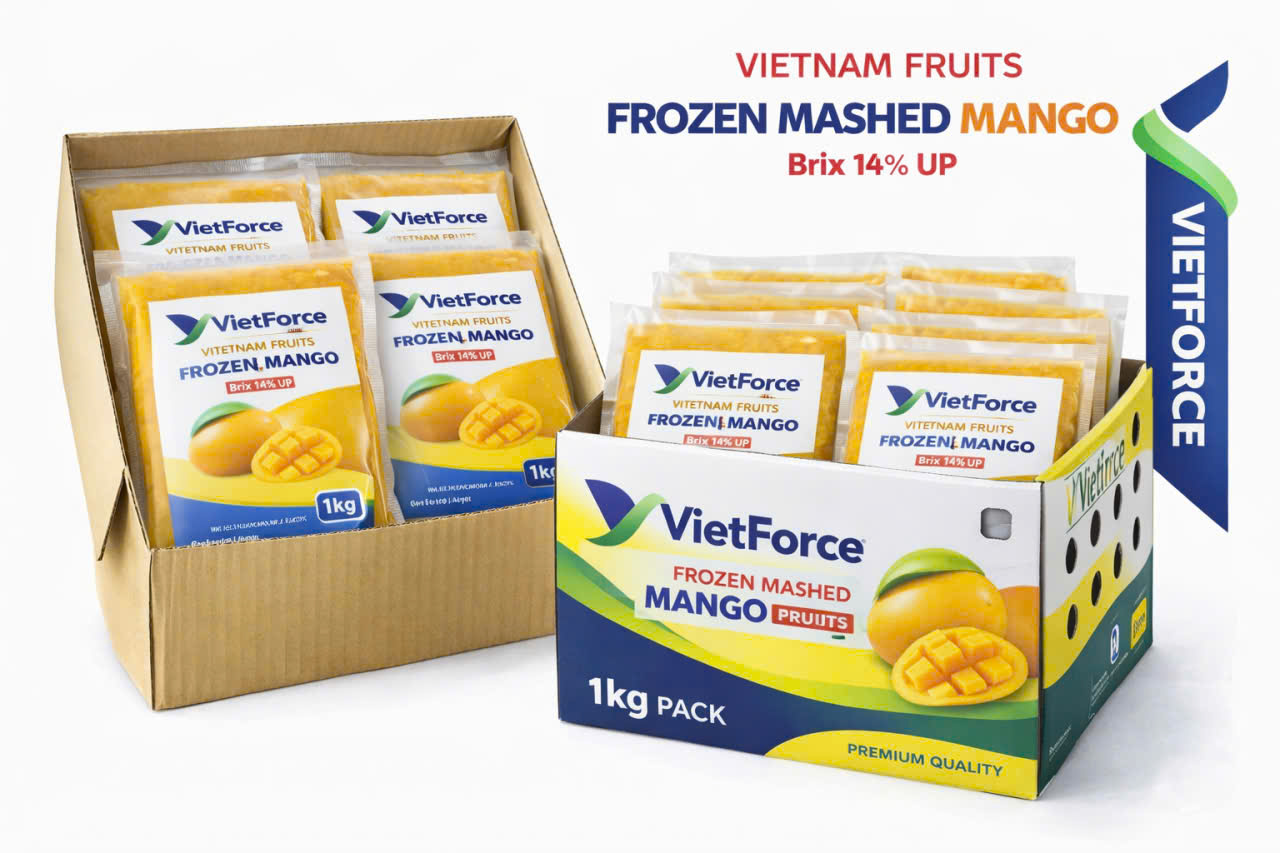 Produced from carefully selected ripe Vietnamese mangoes, our Frozen Pureed Mango features a smooth texture, vibrant natural color, and stable sweetness — ideal for beverage production, food service, and industrial applications.